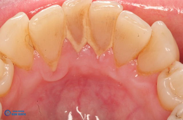 Hiện tượng tụt nướu làm lộ chân răng.